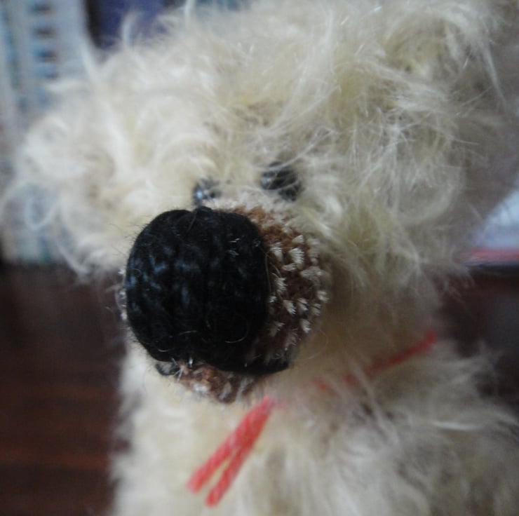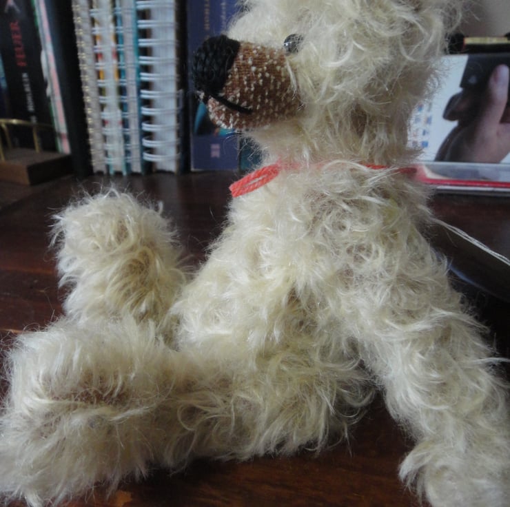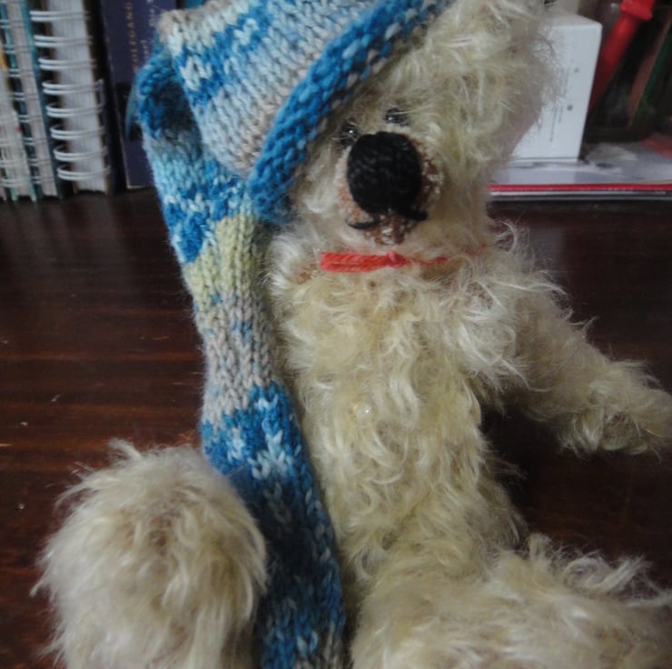 Becca is a 19 cm bear from off white mohair with a copper backing. She will come with her hat.