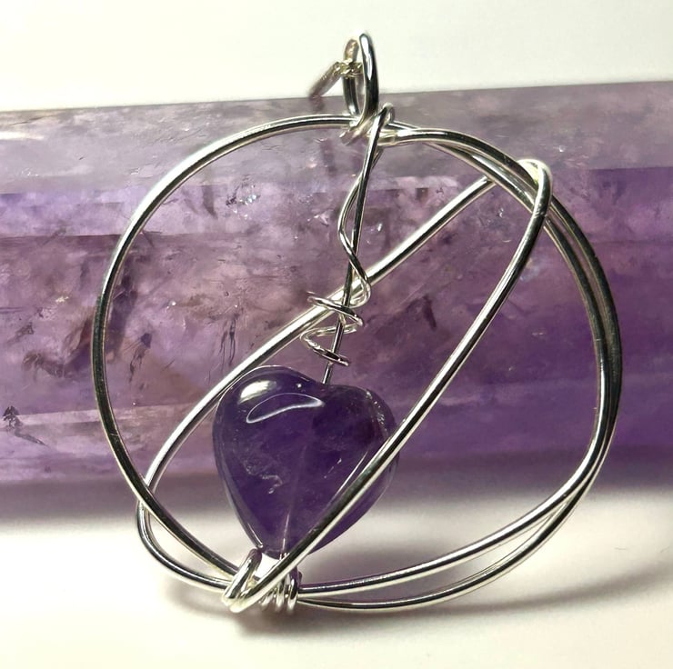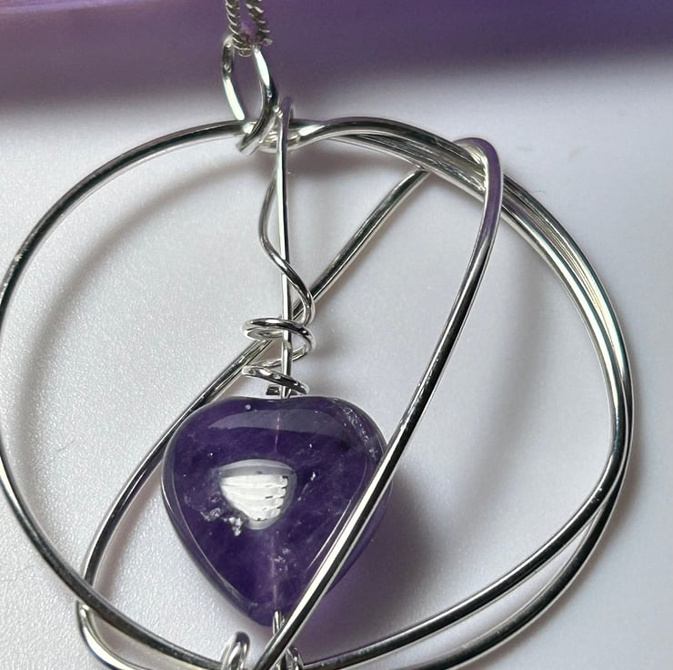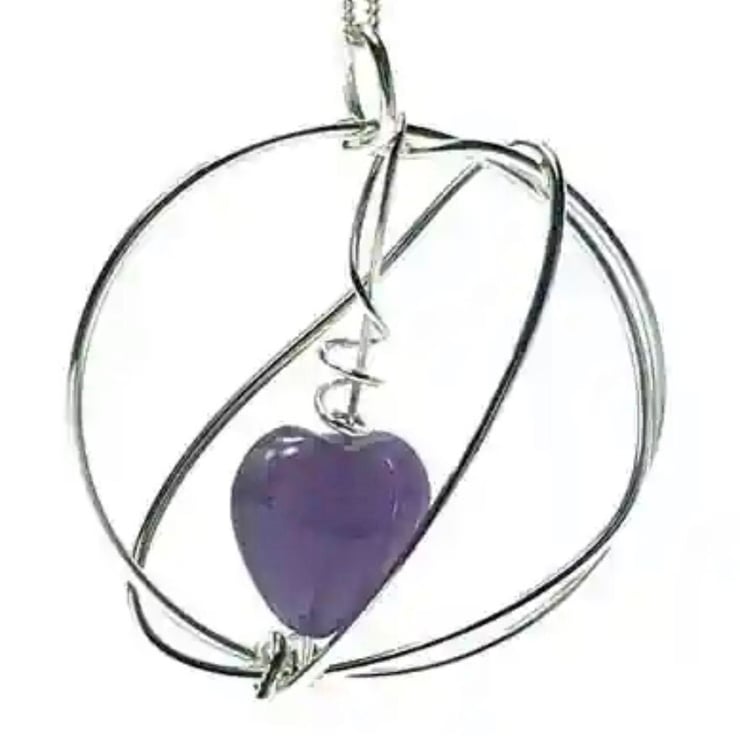 Contemporary amethyst pendant on chain. Made using sterling silver wire this is a one-off piece and very classy. Can be worn for formal events or everyday to jazz up an outfit.