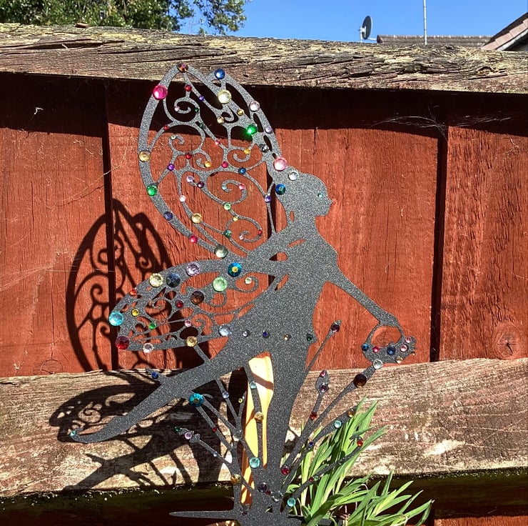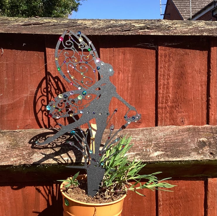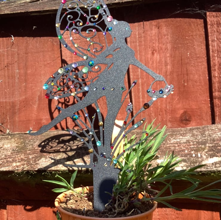 To make it I’ve used metal Fairy garden decoration, embellished it with rhinestones diamanté in different colours .