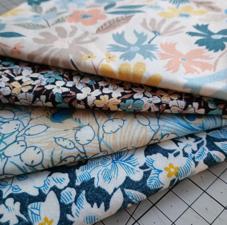 A lovely bundle of four quilting cotton fat quarters, in floral prints from the Artist's Home range by Riley Blake Liberty Fabrics.