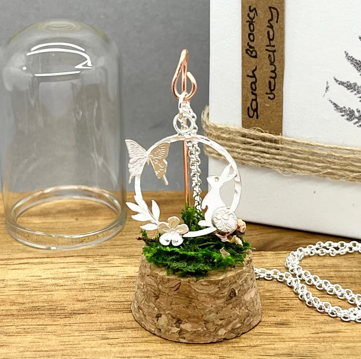 The pendant is also supplied with a mini display bell jar. With moss and a tiny dried flower. The mini bell jar measures 2.8cm x 5.8cm.