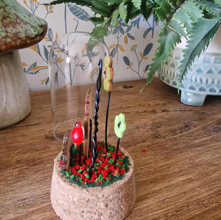 All hand made using paint, buttons, wire, flower sprinkles & a dash of love! I use other repurposed items or quirky finds.