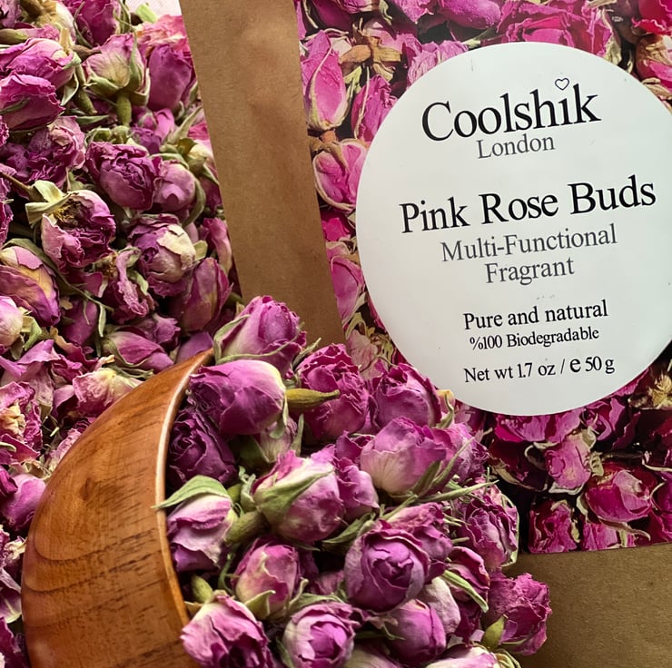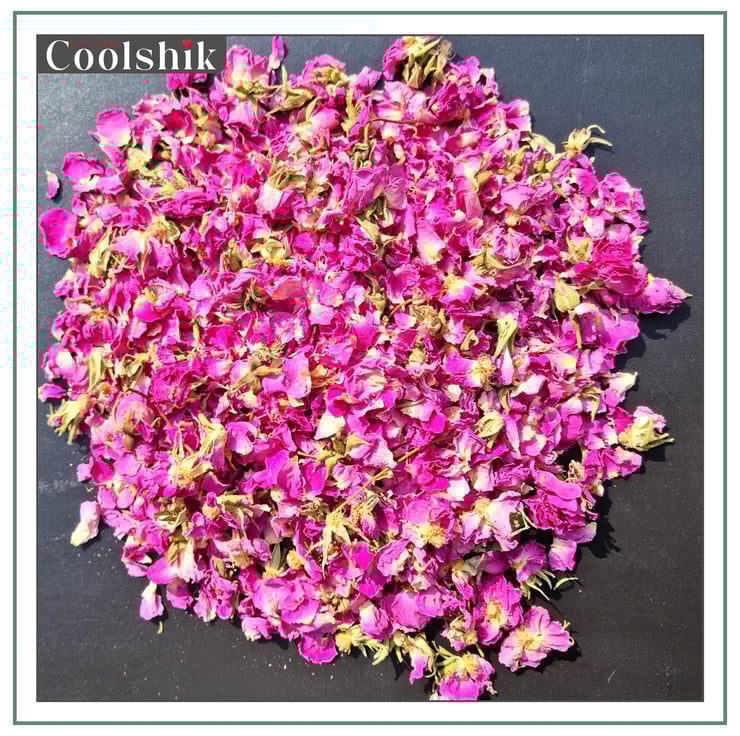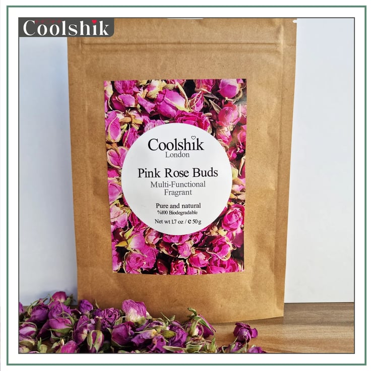 Hand-dried Damask rose buds, 100% natural and biodegradable. Perfect for wedding confetti, herbal tea blends, or elegant cake decorations. Each bud is fragrant and carefully selected for quality. Net weight: 50g.