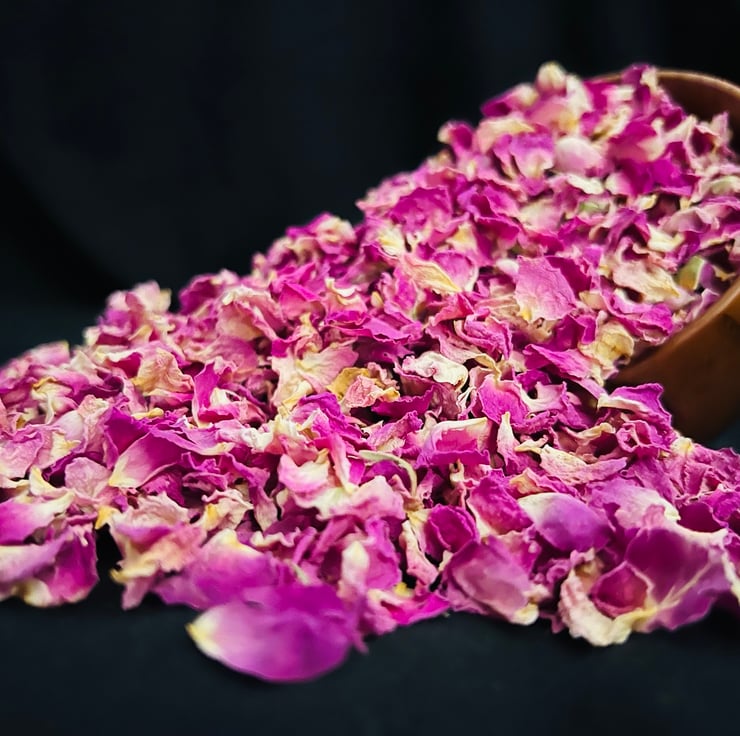 Delicate dried Damask rose petals, edible and ideal for brewing floral tea, crafting, or romantic wedding scatter. Sustainably sourced from London. Net weight: 50g.