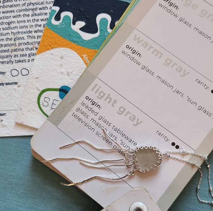 It's hung on an 18inch/45cm sterling silver satellite chain, and cones with a wildflower seed paper information card about the sea glass. It also comes with a free polishing cloth.