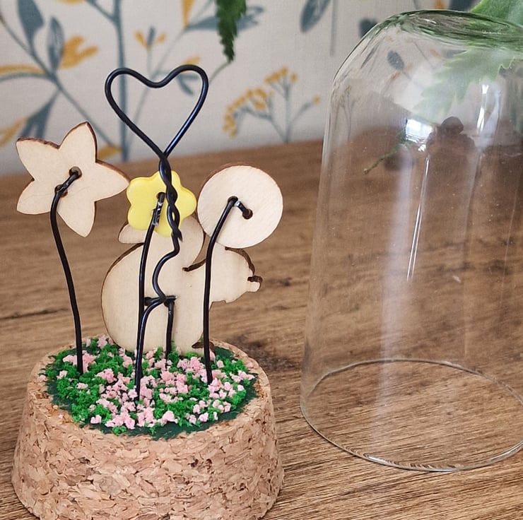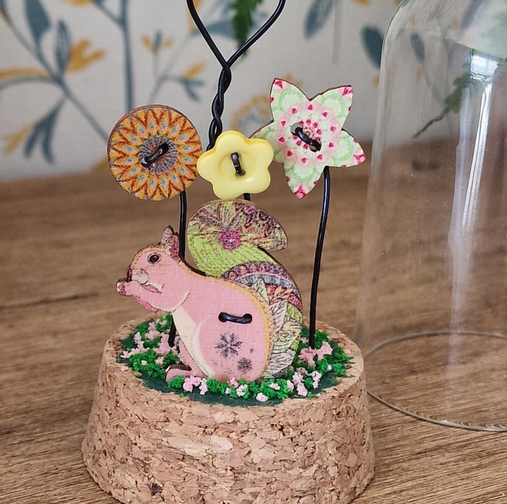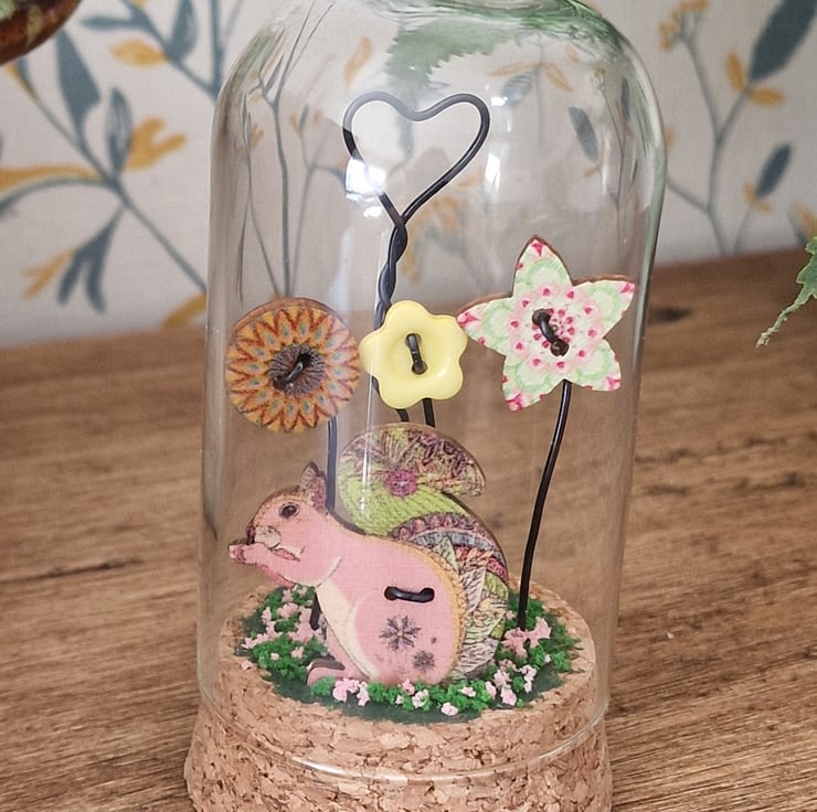 A cute glass dome featuring a pretty Squirrel sitting in a magical garden.