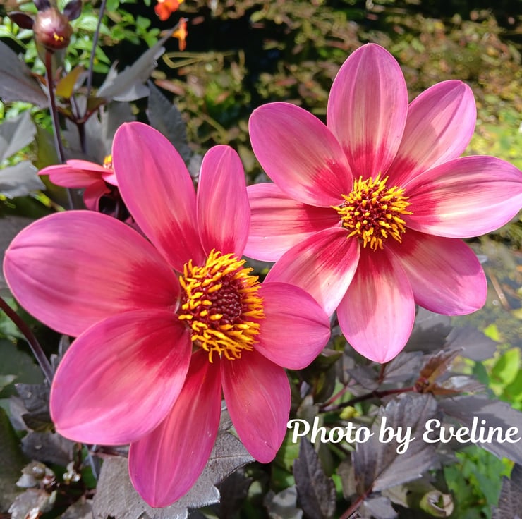 Beautiful variety of dahlias with single flowers and dark foliage. I took the photo in Bodnant Gardens during a Summer visit in 2024. Bodnant Gardens is a beautiful 80 acres place full of gardens, woodlands and amazing plants situated in North Wales.