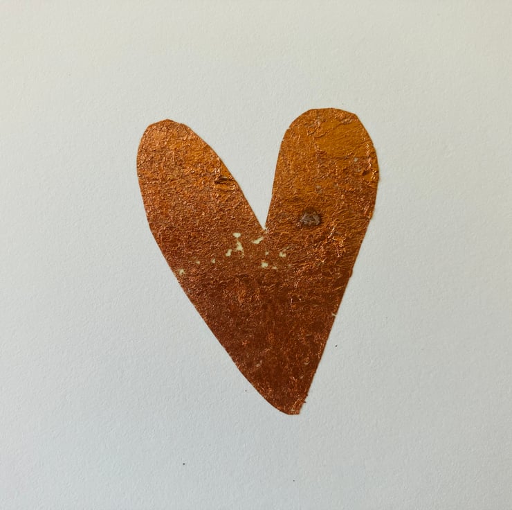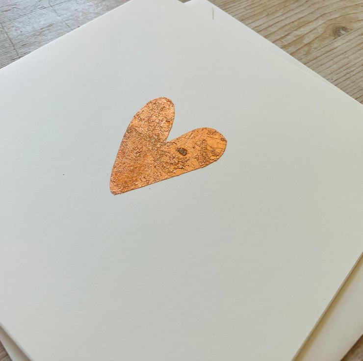 The card is 100% hand made by myself. It has a gold leaf love heart design hand drawn by me. The heart is drawn onto the centre of the card. It is approximately 4 x 5cm in size.