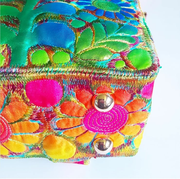 Made from hand dyed Egyptian cottons and silk fabrics.