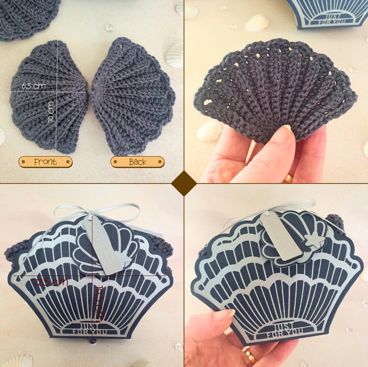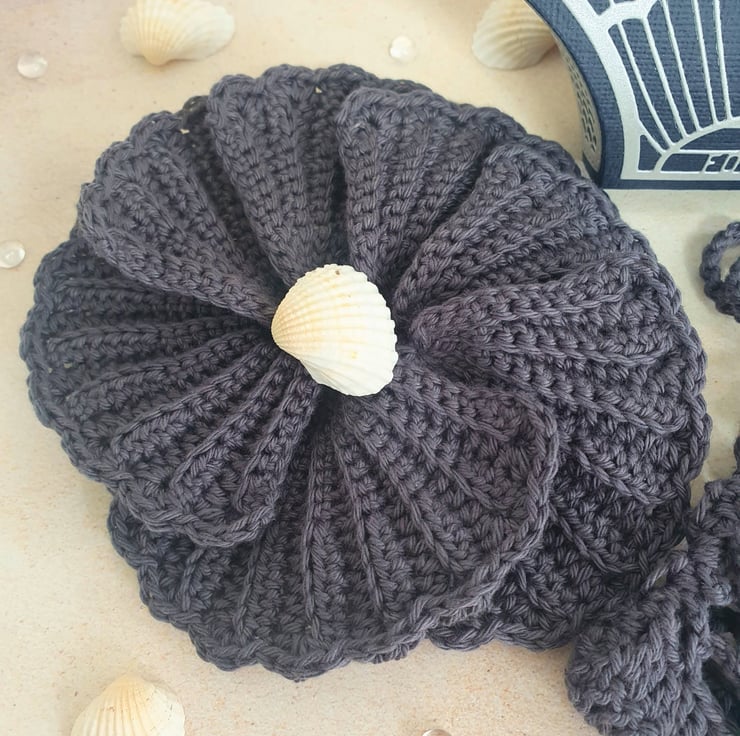 Both the face wipes & the wash bag are hand crocheted with 100% cotton yarn. The set compromises of 1 wash bag & 7 face wipes, all in dark grey colour. They are in the shape of a seashell and they measure approx. 10x6.5cm (widest points). They can be used with your usual cleanser or water to remove make-up. Rinse them after use, shape & lay them flat to air-dry & reuse them. Wash them regularly in the wash bag, which can also be used to store them. The wash bag measures approx. 13 x 16 cm.