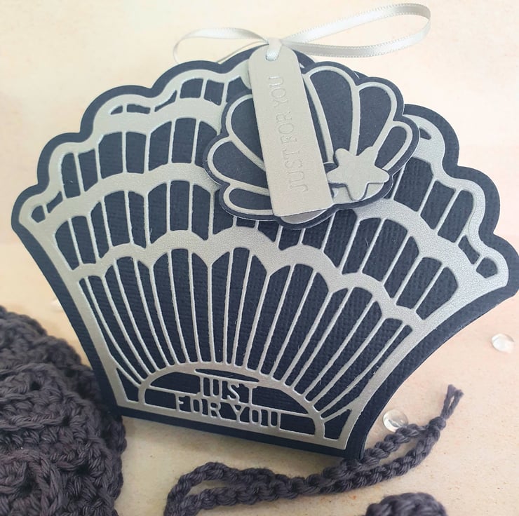 Coordinating handmade seashell gift box in matching colours is available, for a unique, with attention to detail gift presentation. Made of coloured card & pearlescent cardstock, with the sentiment "Just For You" embossed on a swing tag, and die-cut on the front decorative panel. (Extra cost £2.70)