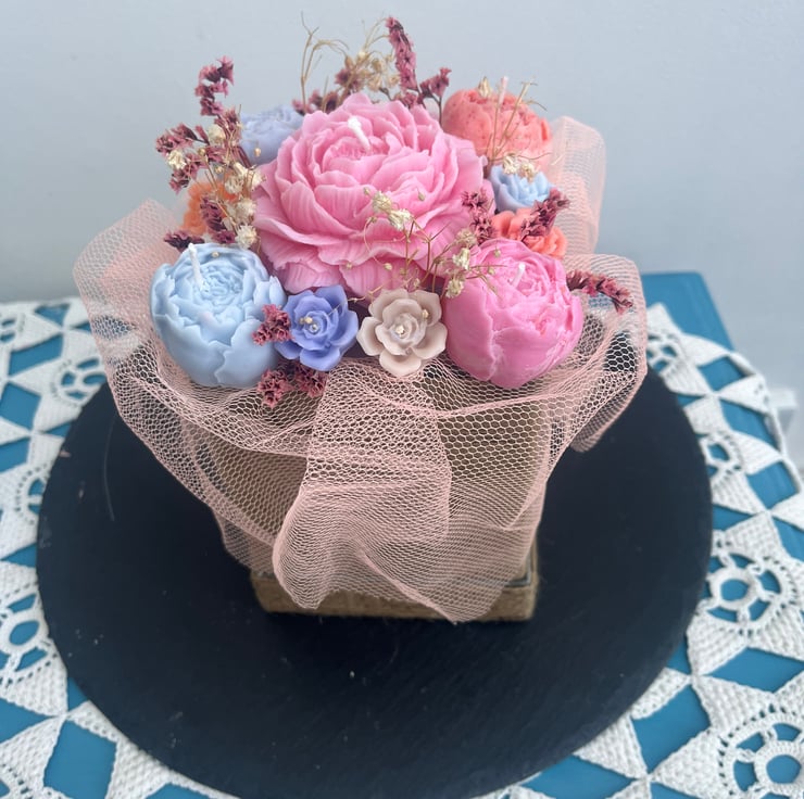 A delicate masterpiece that encapsulates the timeless elegance of peonies in a single, radiant flame. Handcrafted with precision, this exquisite candle mimics the lush petals of a blooming peony, creating a stunning visual and olfactory experience.