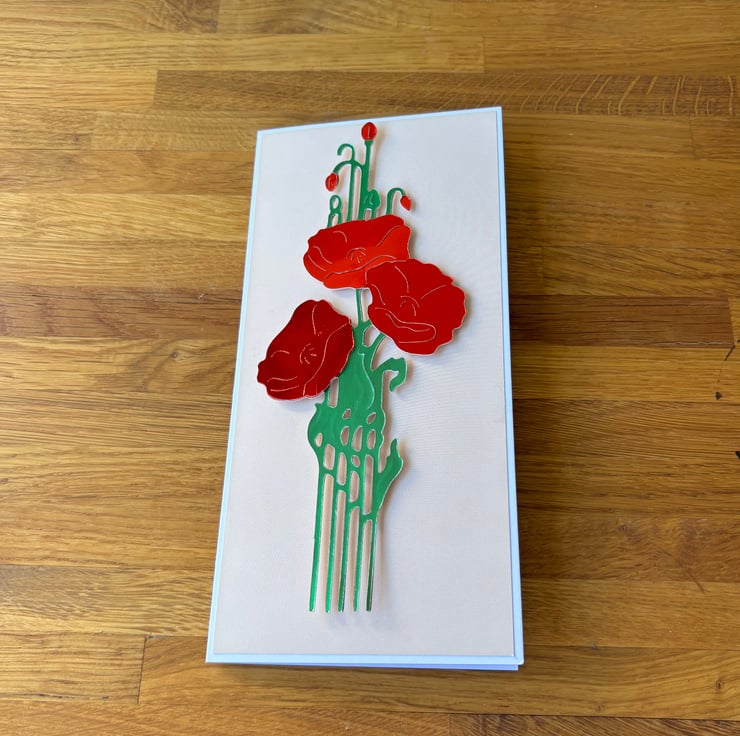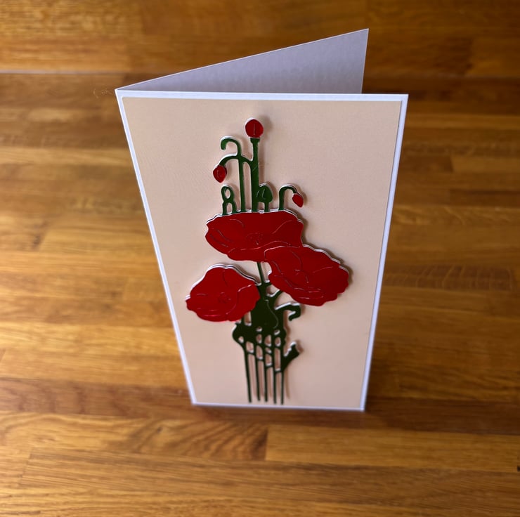 The background to this card is a light cream beige that complements the deco poppies , the poppies I cut from gloss card that shines.