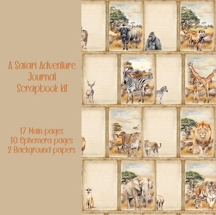 A Safari Adventure Scrapbooking, Ephemera, Journal, Digital Download