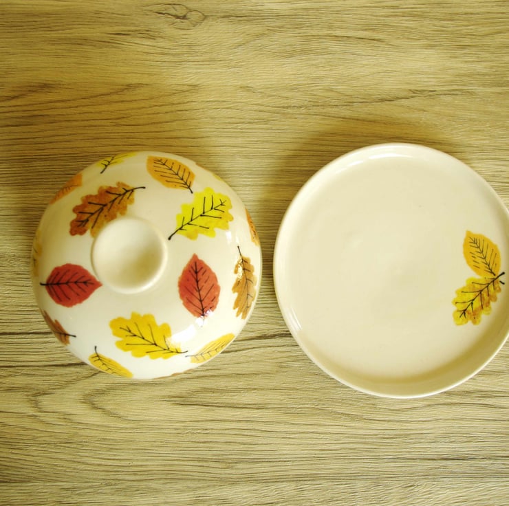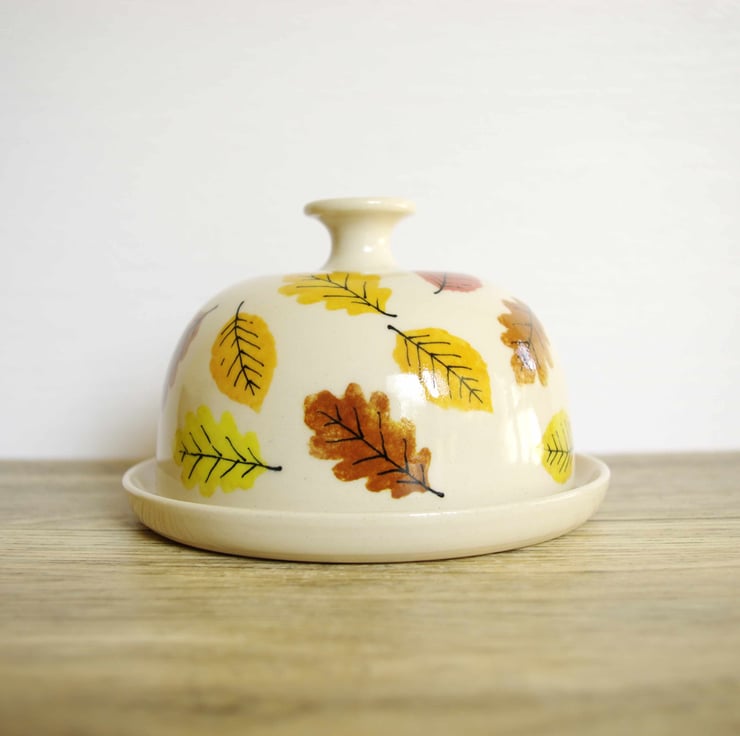 These butter dishes are hand-thrown on a wheel using earthstone clay and glazes fired in an electric kiln.