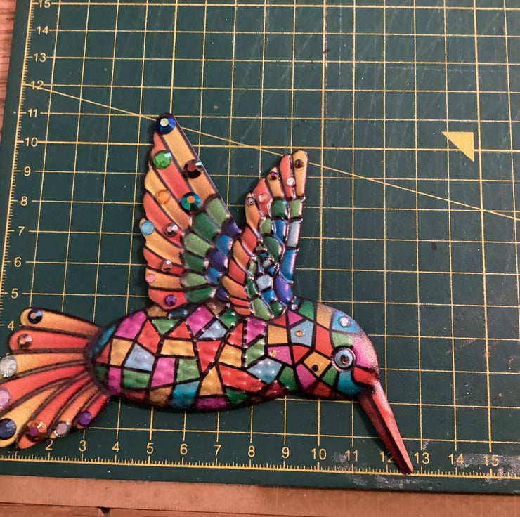To make it I’ve used metal bird decoration, embellished it with rhinestones diamanté in different colours .