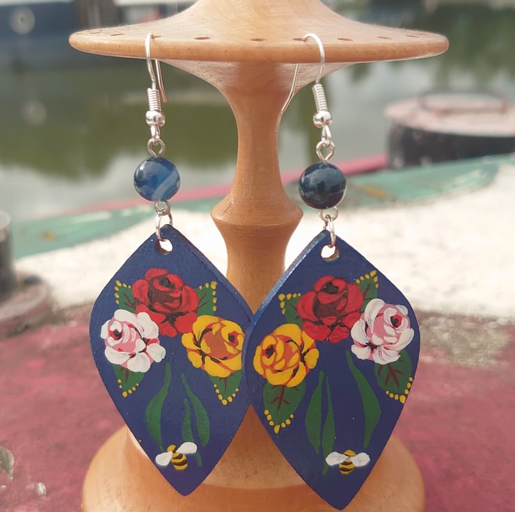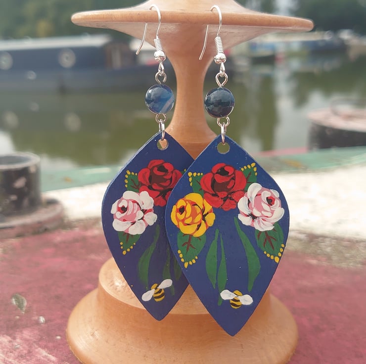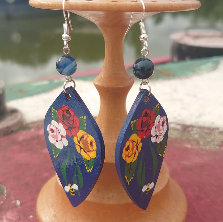 Big and bold, these earrings are very lightweight. The bright colours of the traditional canal art will suit a lively personality!