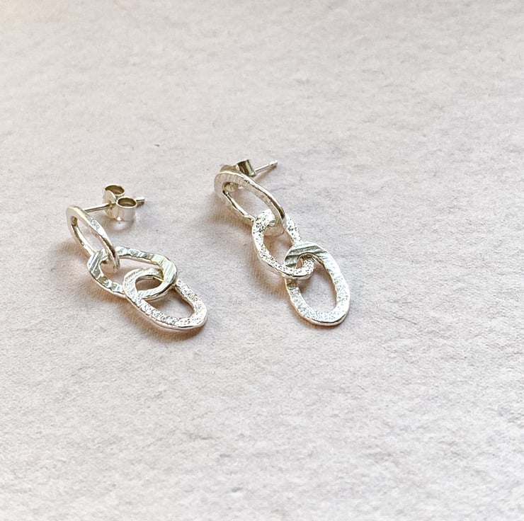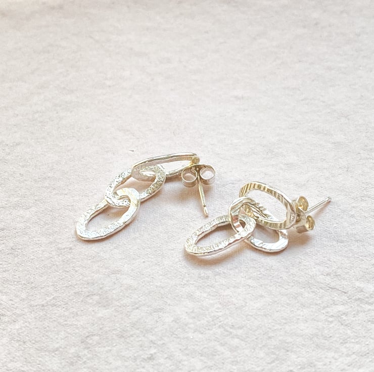 Sterling silver paper clip drop earrings have been delicately textured. Handmade in my UK studio using traditional metal smithing techniques.