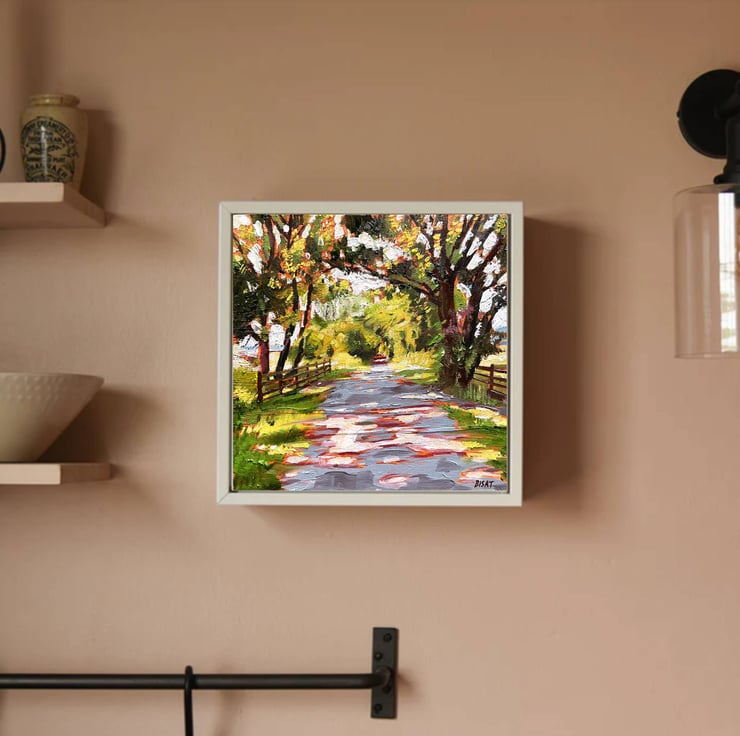 This painting is based on photographs taken last summer of Southwell trail. The item for sale is a highly detailed, 20cm x 20cm canvas print of the painting, which was originally completed in oils.