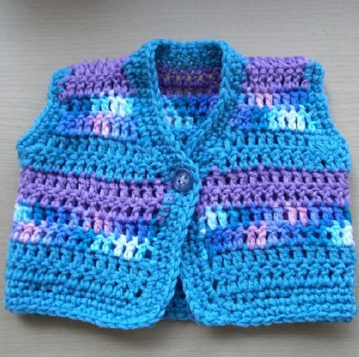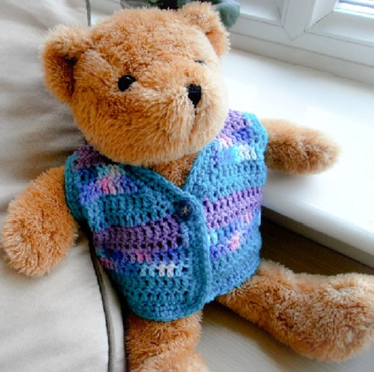 This crochet PATTERN is for a pretty vest for teddy or doll. To fit Teddy height: 38 cm or 15 inch. Crochet in Sean Sheep Lara Lamb Double Knitting yarn using a 4 mm crochet hook. This pattern uses US terminology.