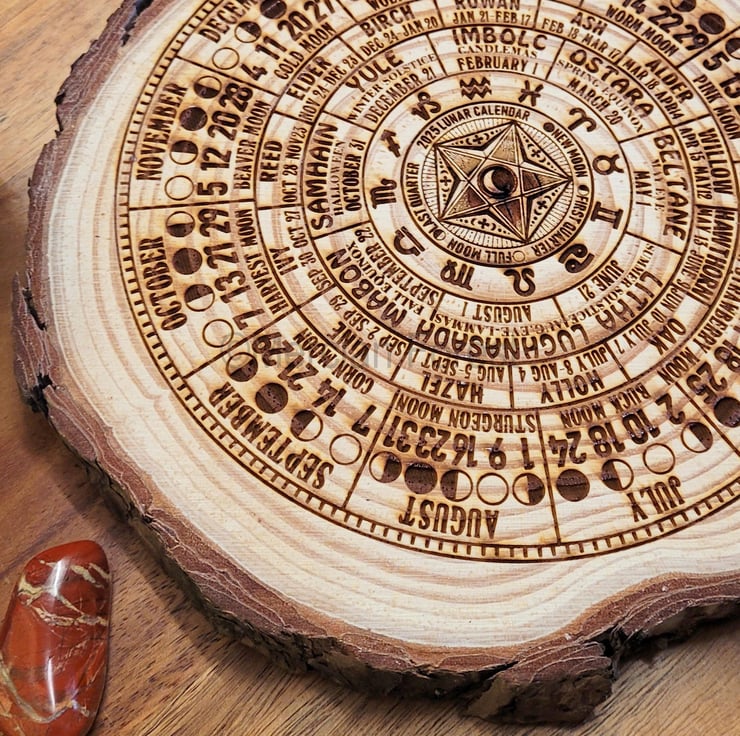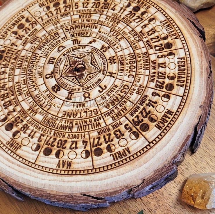 This Altar Tile is a complete guide to the year ahead. This would make a perfect Altar addition so that you have all the required information at your fingertips! With the Lunar dates for each cycle you should never miss a full moon again! The Celtic Tree Calendar just below, shows you the tree association (based on the ogham alphabet) and dates they fall between starting with the birch that falls from 24th December to January 20th.