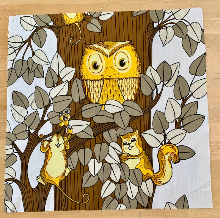 CUTE RETRO DIY Cushion front 60s 70s Owl Woodland DURO Vintage Fabric.