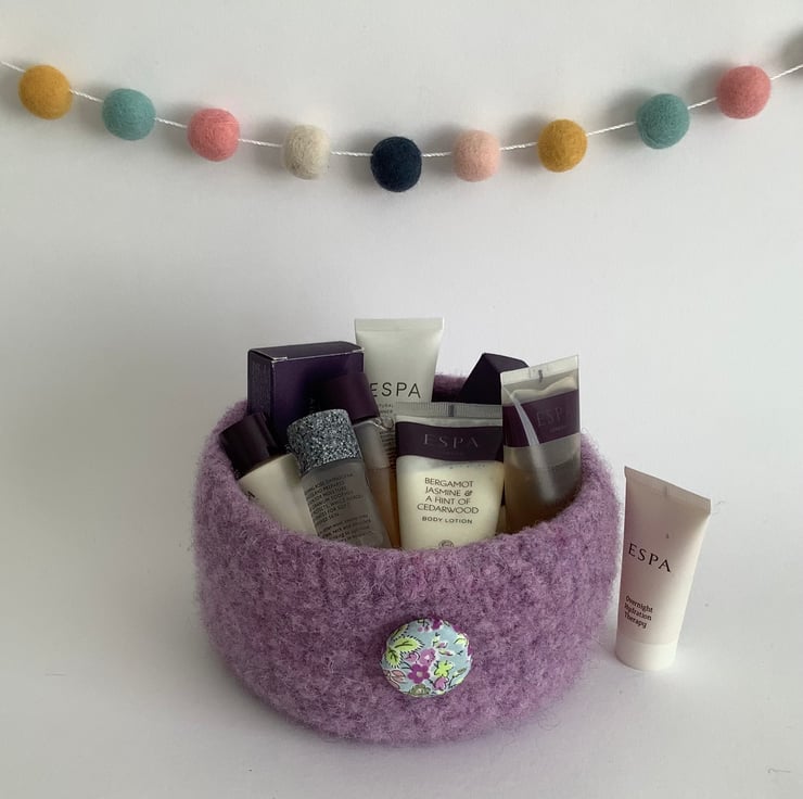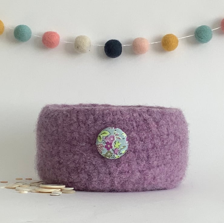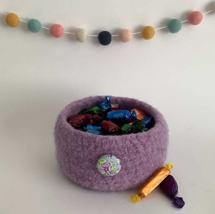 FELTED 'FUSSPOT' BOWL, desk tidy  . Lilac . Purple .Floral .