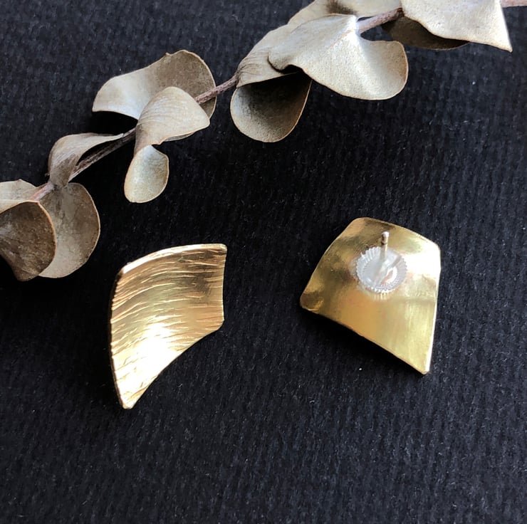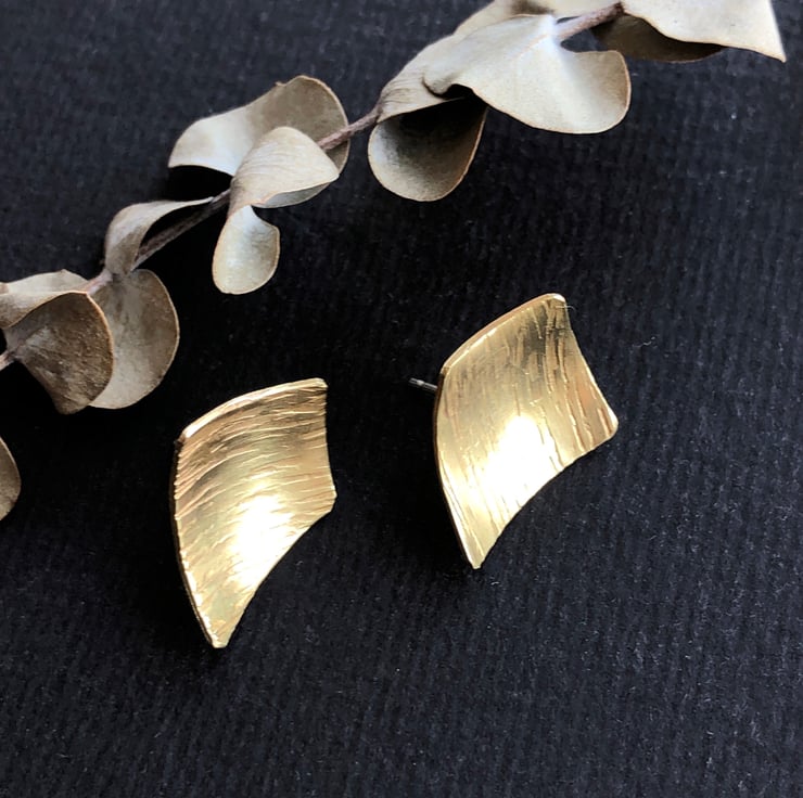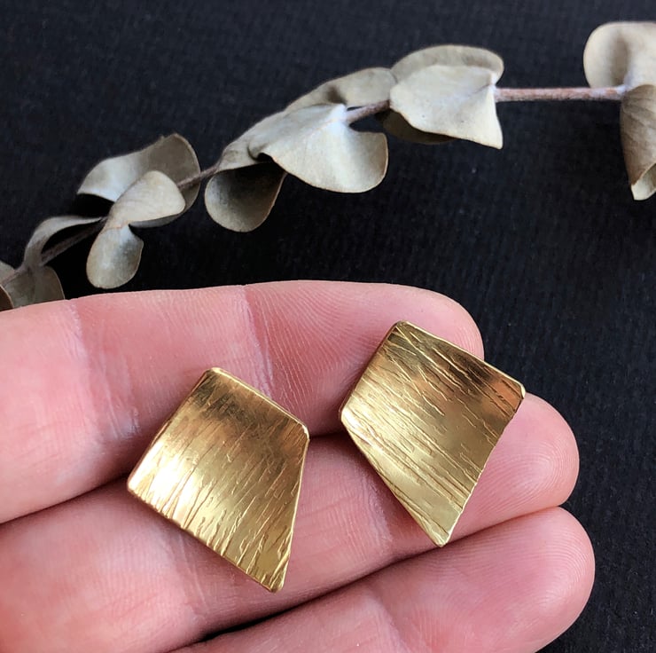 These geometric shapes are cut and formed from sheet metal to create a simple and stylish stud earring. Made from metal offcuts left over from my bowls.