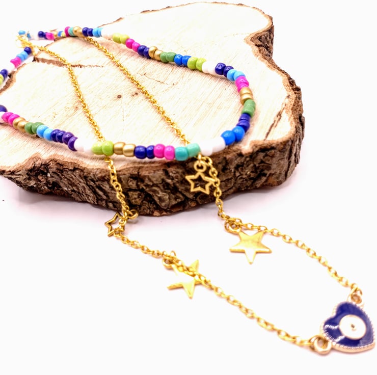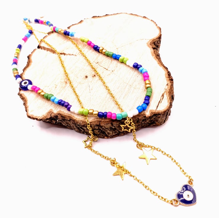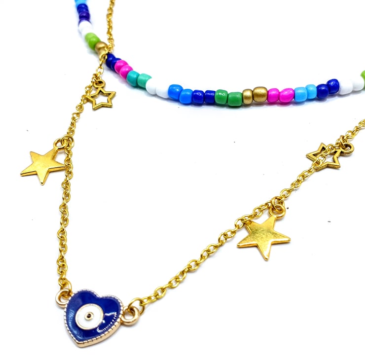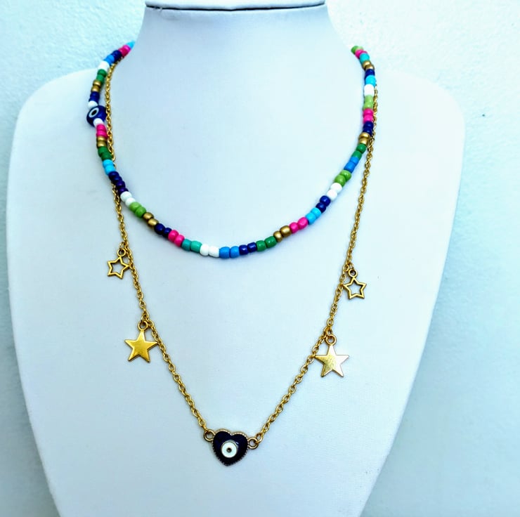 Handmade Evil Eye Gold Coloured/Beaded Necklace.