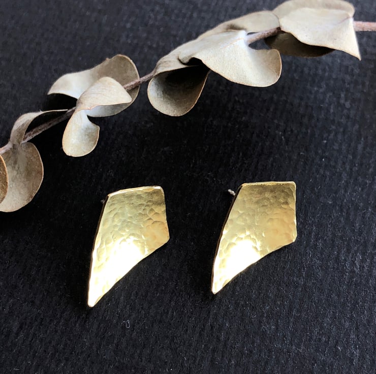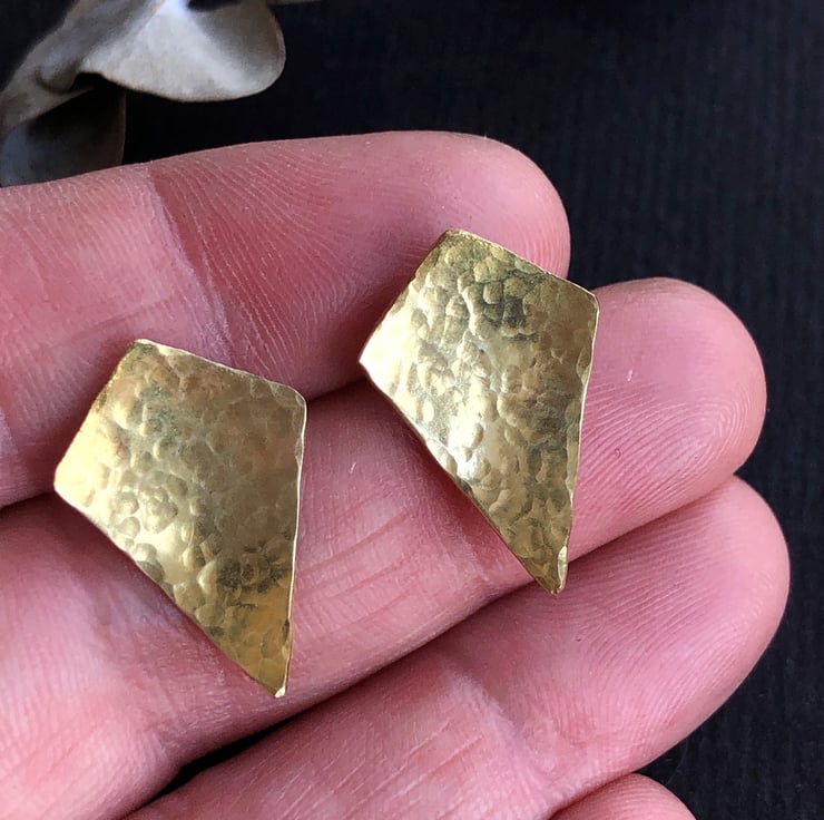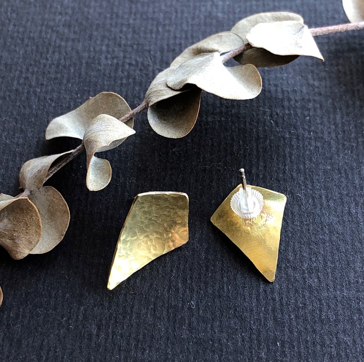 These geometric shapes are cut and formed from sheet metal to create a simple and stylish stud earring. Made from metal offcuts left over from my bowls.
