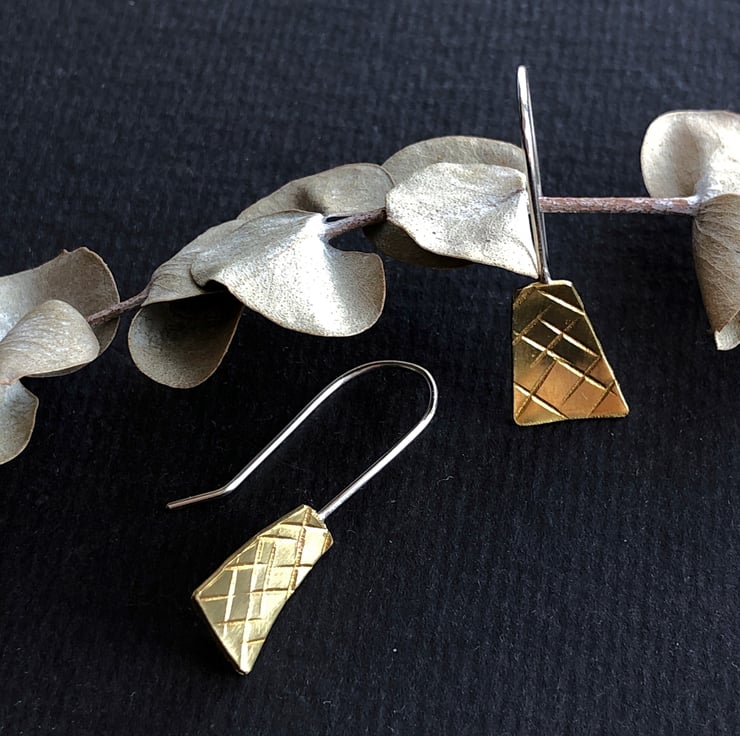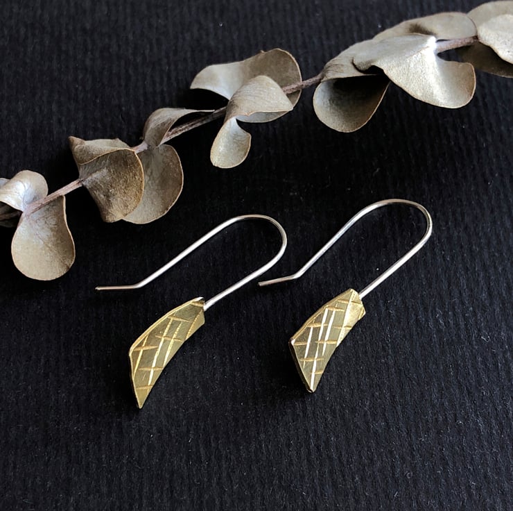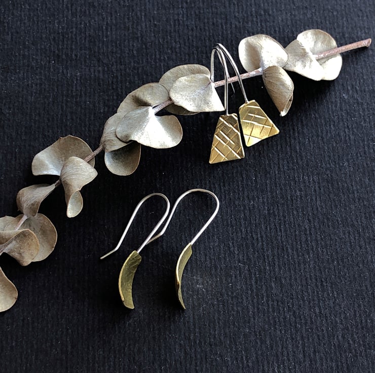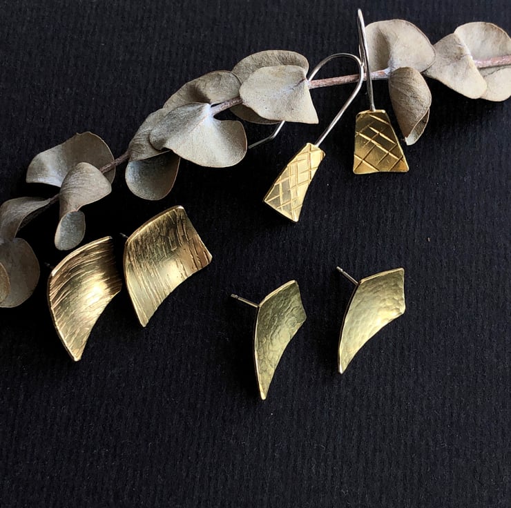 These geometric shapes are cut and formed from sheet metal to create a simple and stylish stud earring. Made from metal offcuts left over from my bowls.