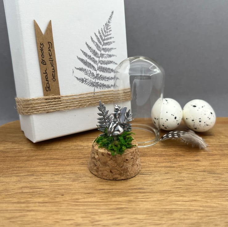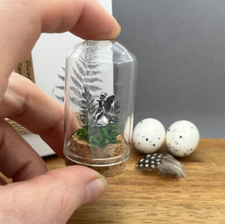 A magical little scene displayed in a tiny bell jar that measure 2.8 cm x 5.8 cm.