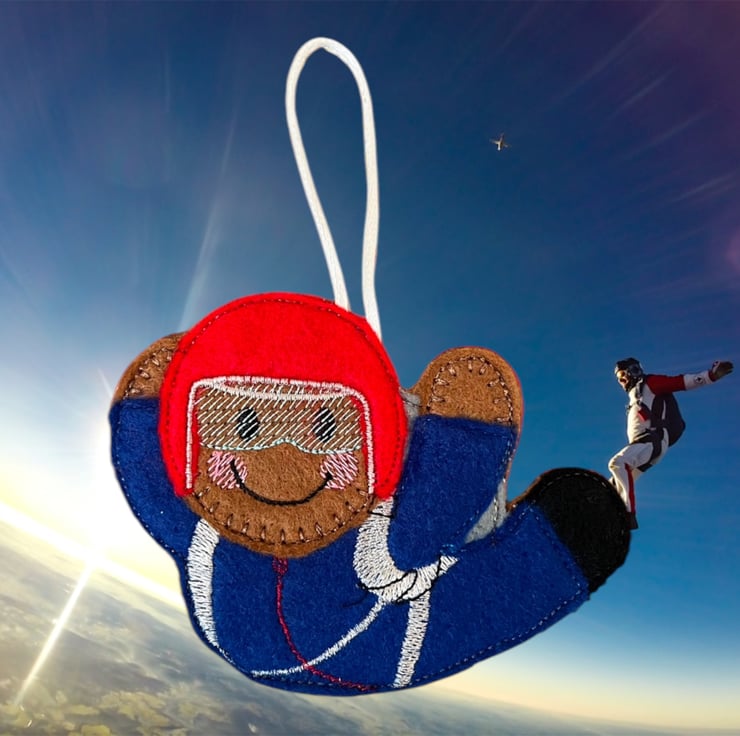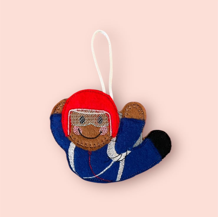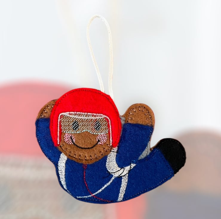 Gingerbread man lady skydiving Embroidered Hanging Keepsake