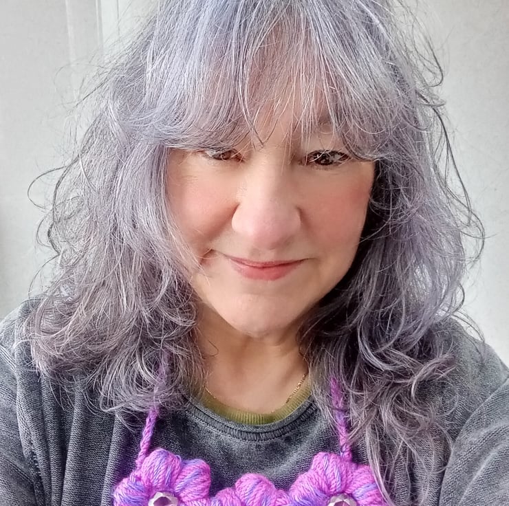 This is a very pretty crochet puff flower necklace in a lovely colour mix of pink and lilac. It's a big statement look but is very comfortable to wear. It has faceted glass beads at the centre of each flower and these really catch the light. This necklace has the added benefit of being nickel Free