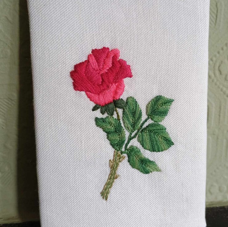 You can choose to use any embroidery stitches for your Rose, or you can follow my detailed stitch guide - I used padded or raised satin stitch, fly stitch and back stitch - and I show you how to do them.