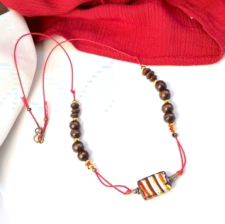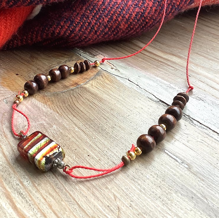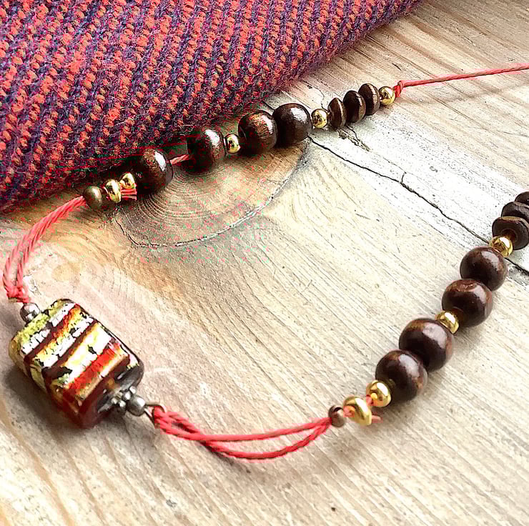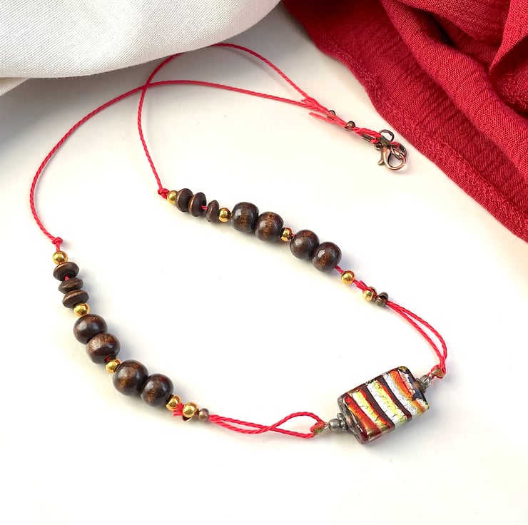 Boho ethnic Wooden bead necklace, funky colourful candy bead pendant