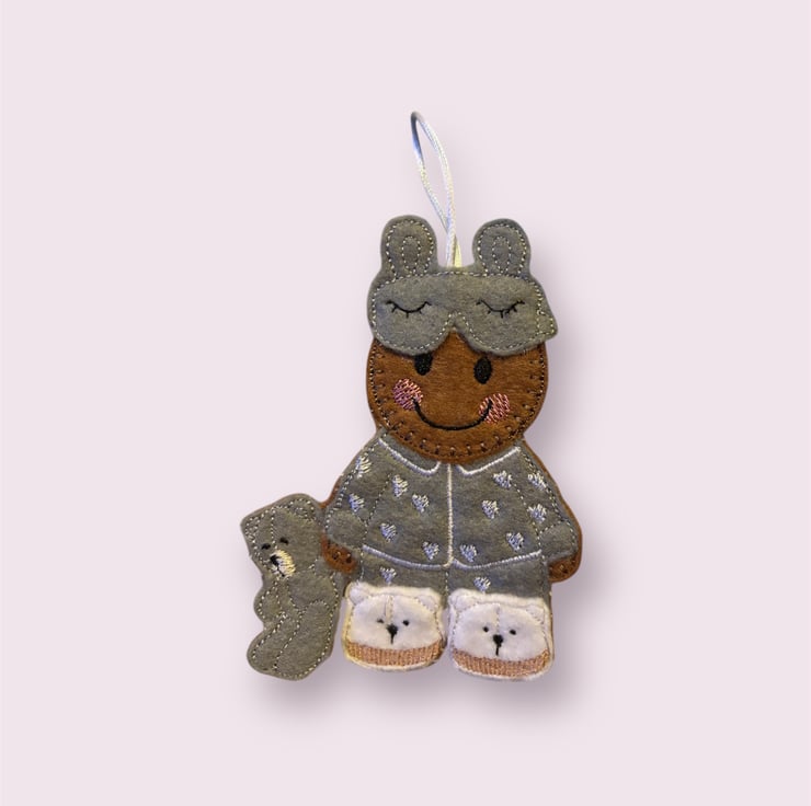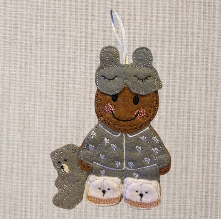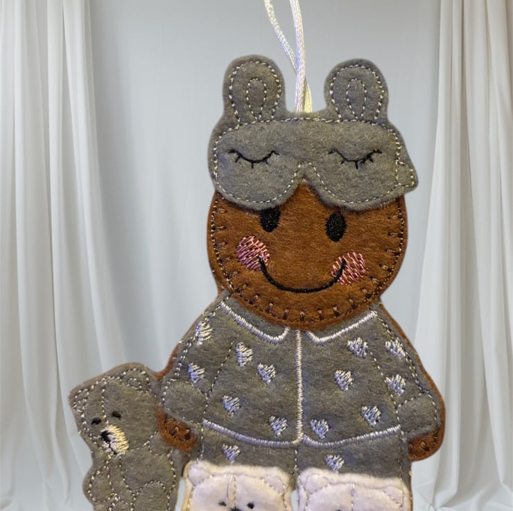 PJ’s and teddy Gingerbread Embroidered Hanging Keepsake