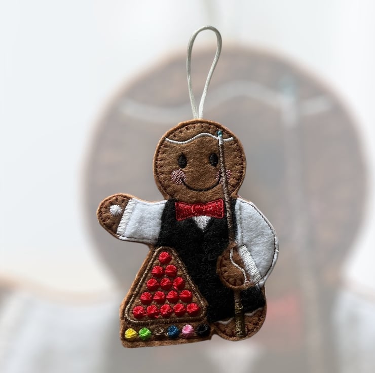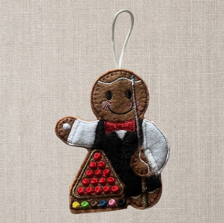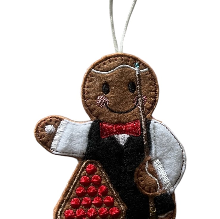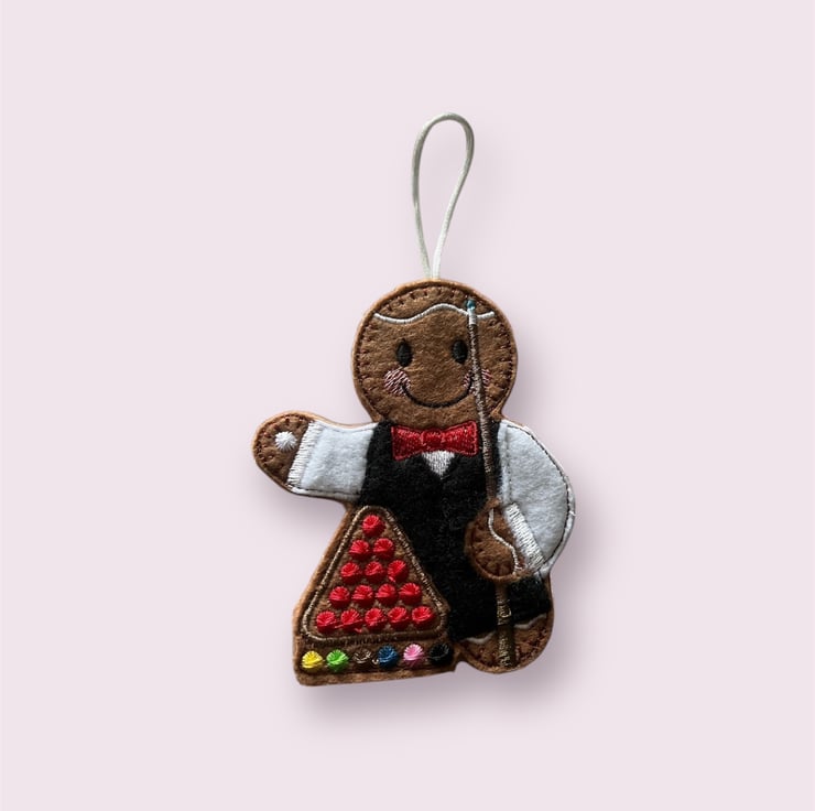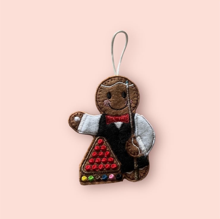 Snooker player Gingerbread man Embroidered Hanging Keepsake