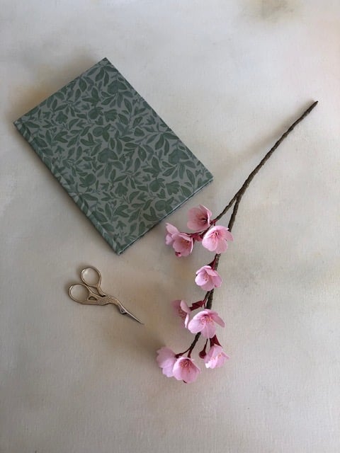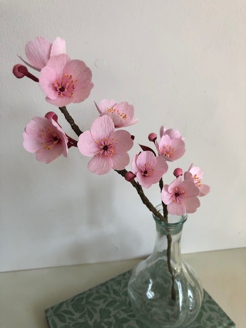 Delicate and ethereal cherry blossoms are a sure sign that spring is here. This pale pink paper cherry blossom branch features clusters of flowers, buds and unfurling leaves. Handcrafted from the highest quality, FSC-certified crepe paper, it is carefully coloured with artist-grade, light fast acrylic paint and pastel. Each part of the flower is painted, cut, shaped and assembled entirely by hand. Paper flowers are handmade to order so there may be some very slight differences to images shown. Stem approx. 39cm long.