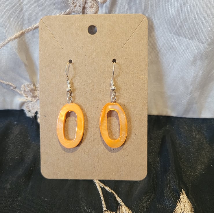 Dangle Earrings, S925 Sterling Silver Hooks with Orange Shell Oval