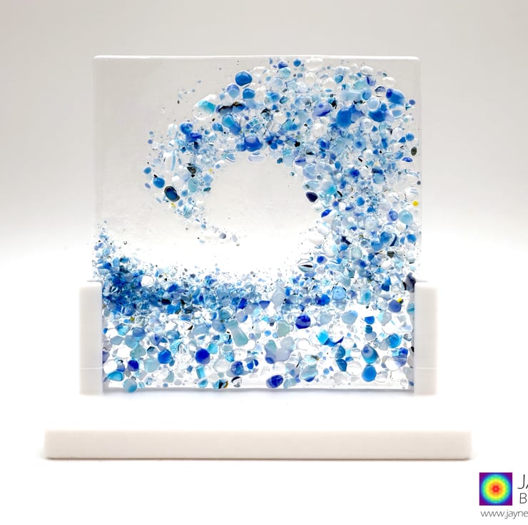Shown with my own handmade fused glass seascape panel which is 10x10cm.