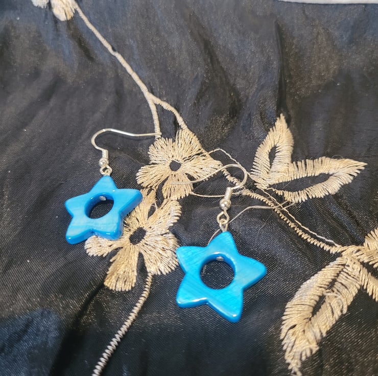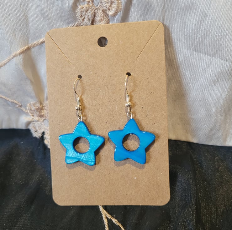 Dangle Earrings, S925 Sterling Silver Hooks with Blue Shell Stars