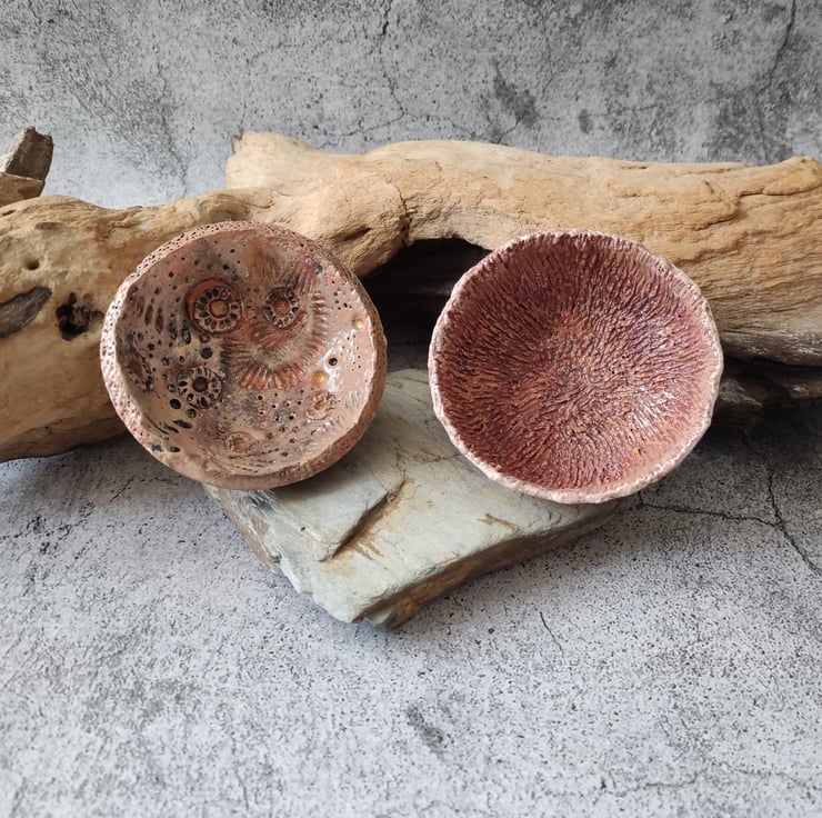 This pair of little bowls are inspired by sea fossils and sea urchins and are the latest addition to my Ancient Seas Collection! Hand built from air dry clay and hand painted with acrylics. I finished these with a gloss sealant for a 'just plucked out of the sea' look! As with all my work, they are full of textures and completely unique. A perfect gift for those that love the sea as much as I do!