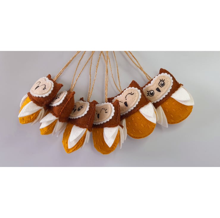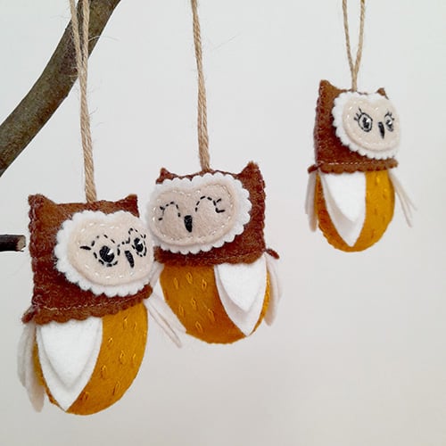 These little felt Owl decorations that would look amazing hanging in a display within your home any time but particularly within an Autumn display or hanging within the branches of a Christmas Tree.