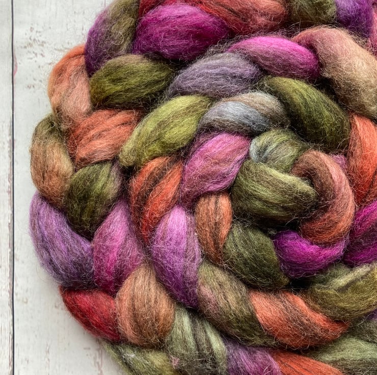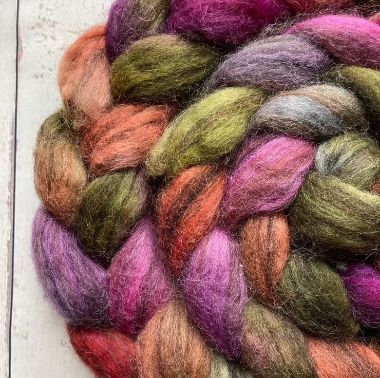 A mix of Shetland moorit, Black Welsh, Cotswold, grey Teeswater and grey Massam. Blended skilfully together by Tom and Ellie at Wingham Wool to make a fantastic medium heathered fibre with both a beautiful crimp and sheen.