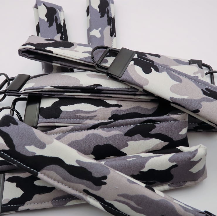 This listing is for a military style, grey camouflage key fob / wristlet and scrunchie set.
