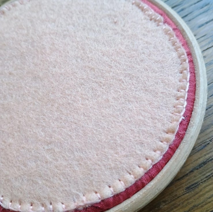 The picture is mounted in a wooden hoop - using the gathered stitch technique not glue - and finished with a circle of 100% wool felt, carefully hand sewn using blanket stitch - so the back is as neat as the front.