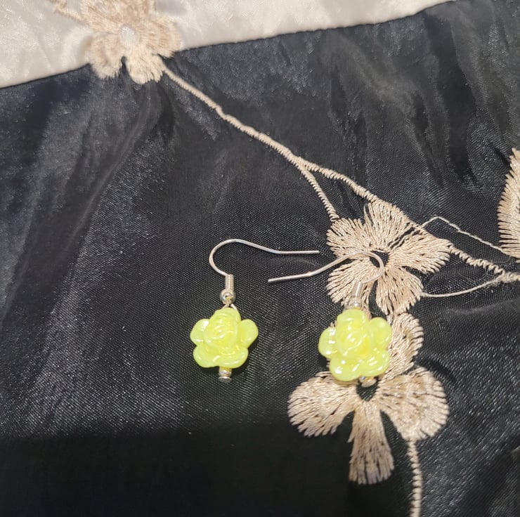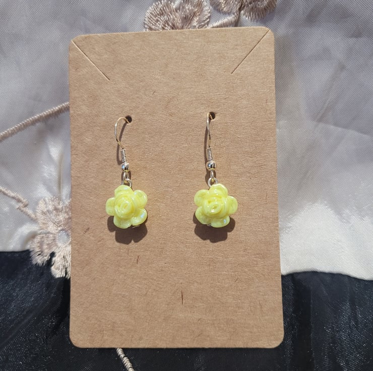 Silver Earrings With Tiny Shimmer Roses In Yellow