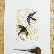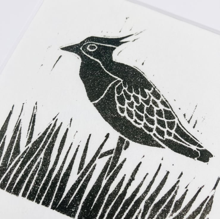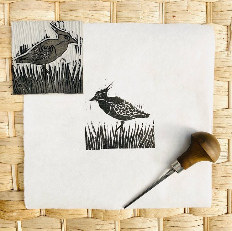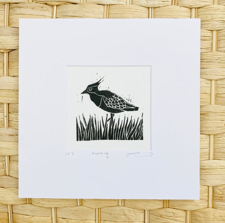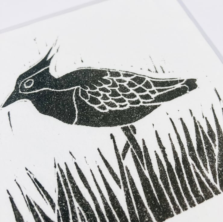 This Lino Print has been hand printed in using traditional lino printing techniques. The Linoleum is hand carved and the print is pulled with a hand burnish. With the charming design of a Lapwing, it would be perfect for any nature lover to receive.