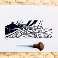 It has been printed using Caligo printing inks onto Hoshi Washi Paper. The print is 3x3 inches in size and framed with an 8x8 inch mount, backed with mount board and ready to hang in your favourite frame. This is part of an Open Edition (OE), with each print being numbered and signed. Prints and colour may vary due to the hand made nature of the printing process which makes each one unique and one of a kind.